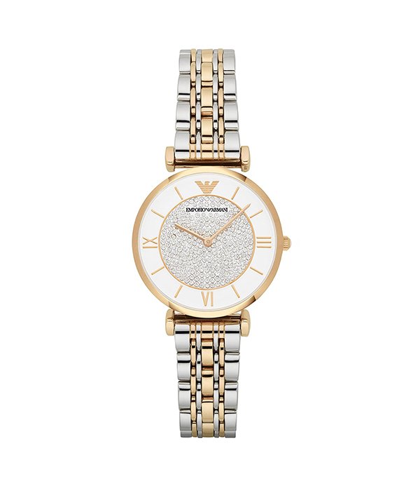 Emporio Armani Gianni T-bar Silver/Gold Stainless Steel 32mm Ladies Watch (AR2076)